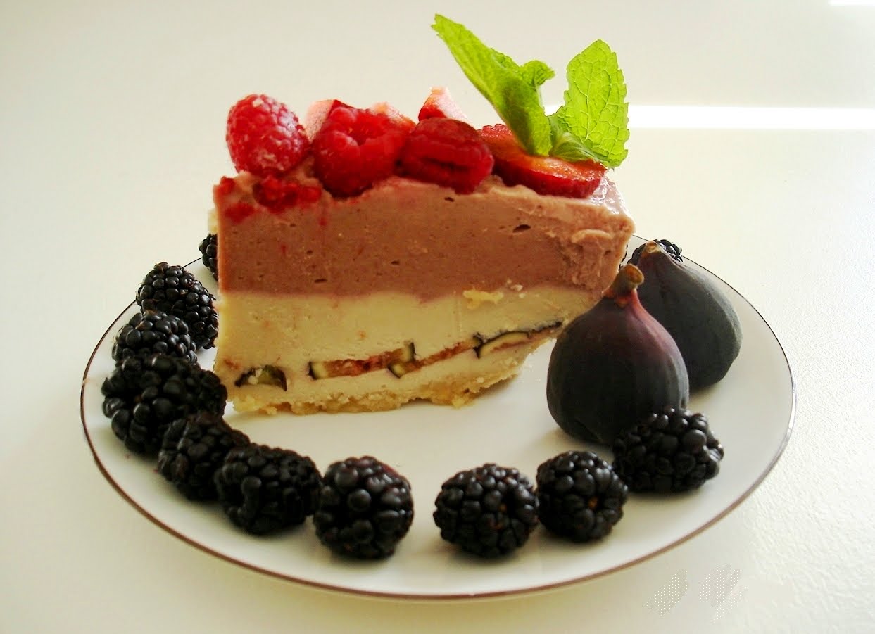 Process firstly the nuts in a food processor, then add the remaining ingredients and keep processing to a very smooth consistency. Pour a thin layer over the crust, then layer with sliced figs or fruit of your choice, pour the mixture remainder and return to the fridge for 1-2 hours, or a freezer for 30 minutes - 1 hour.