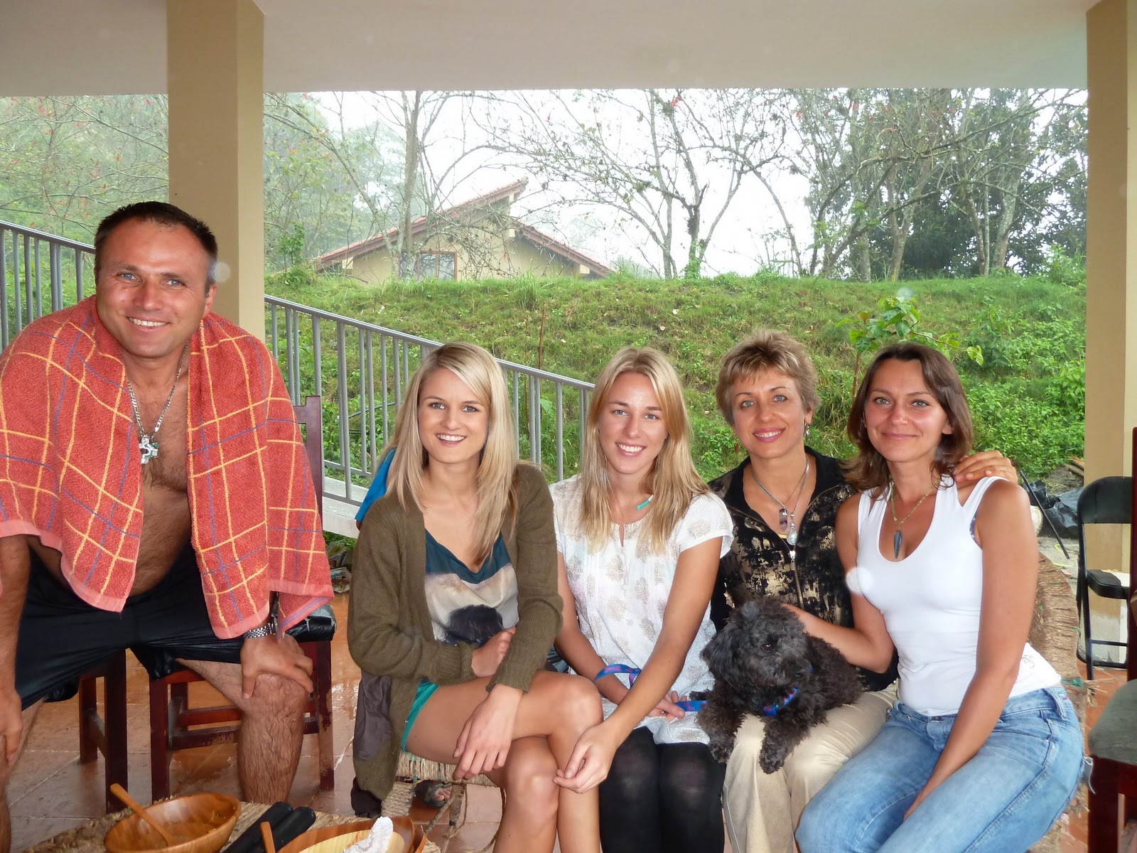 Vladimir (dad), me, Alissa (sister), Elena (mum), Kiwi (doggie), and Irina (friend) |