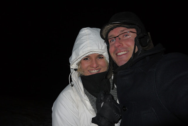 Neither Elliot nor I have seen the Northern Lights before and we had no idea what to expect. So we parked by the shore and sat inside the warm car, plastered in ski gear, camera in hand, ready to run out and start clicking at the first glimpse of whatever. When we finally noticed something which could pass for a subtle greenish washed out cloud, we were both out the door, marching ahead to the top of a small hill, as though we've spent months training for this very occasion.