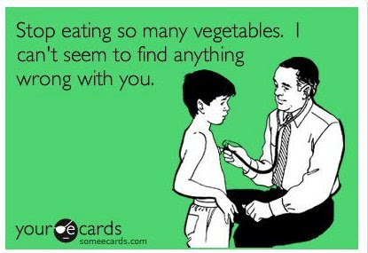 Stop eating so many vegetables. I can't seem to find anything wrong with you. |