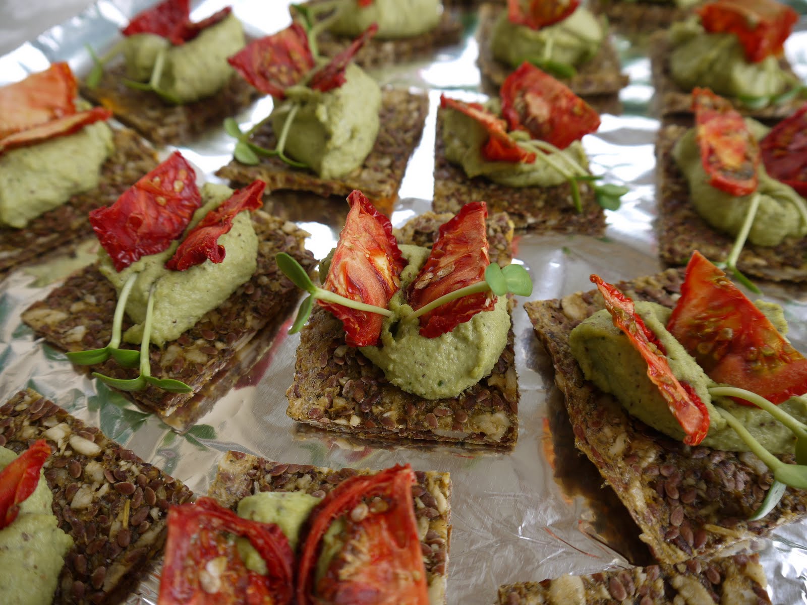 My contribution was 'raw hummus on dehydrated crackers' with a twist (I made them to look like Monarch Butterflies for none other than Monarch butterflies Matt & Angela). Here is the recipe for you...