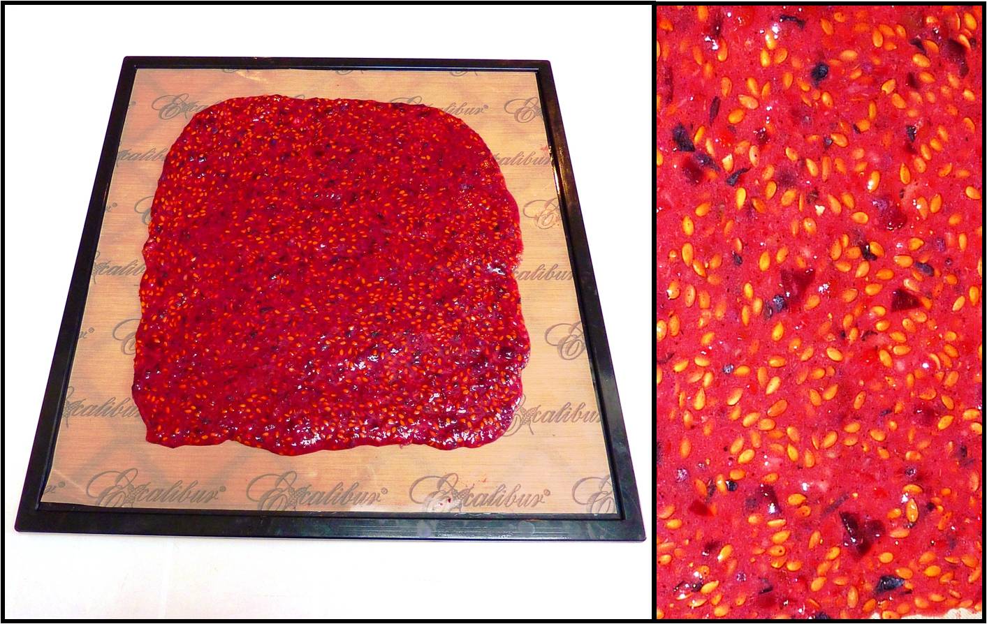 Spread the mixture over 2 dehydrater trays with teflex sheets