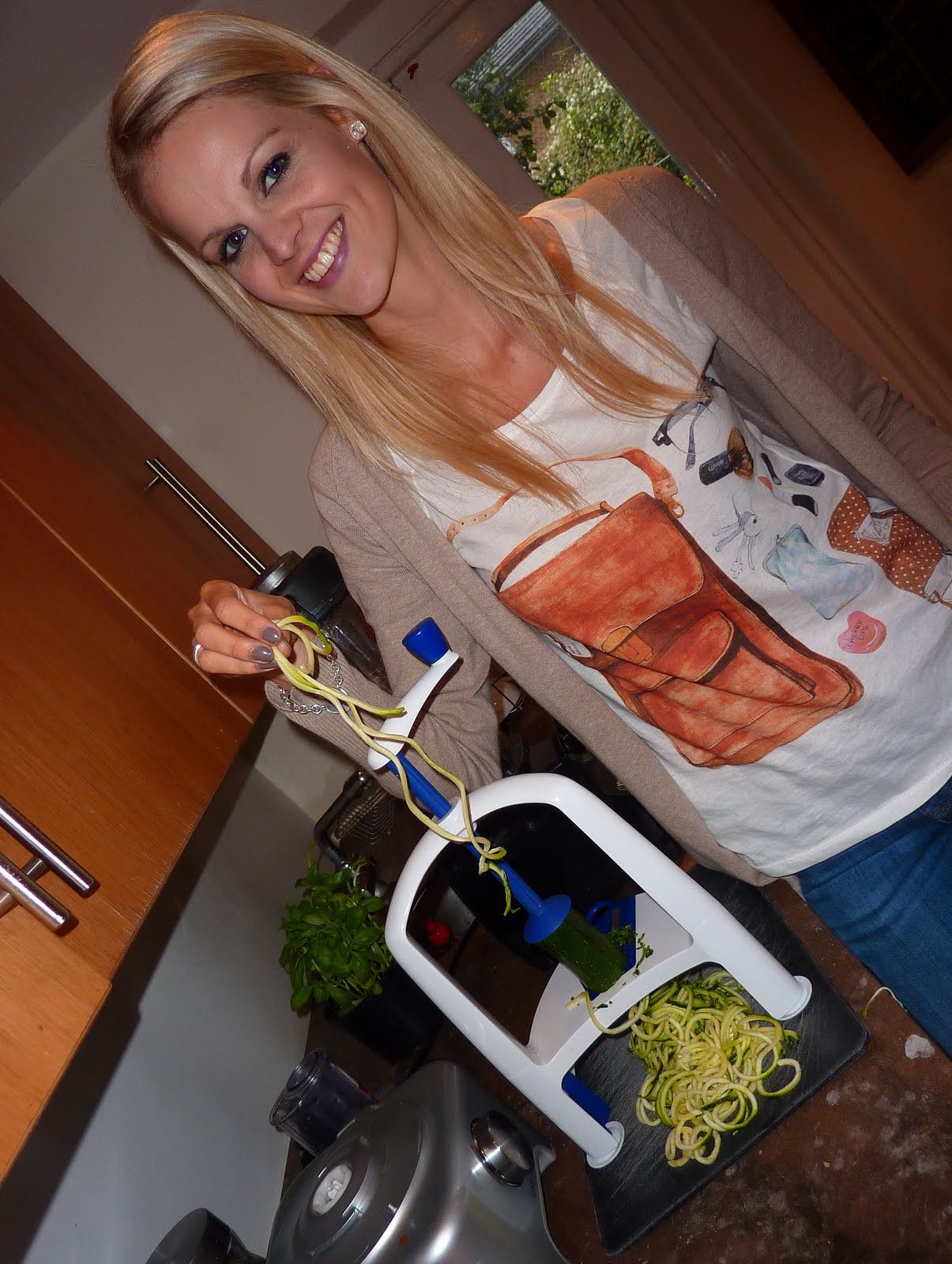 [Roz with her first Zucchini noodle! My joy is what I can only imagine is like a mother's, hearing her child speak their first word!]