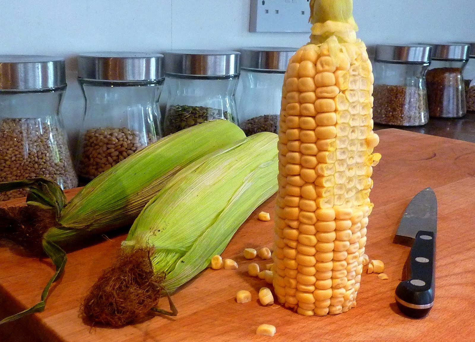-Slice the corn kernels off the cob