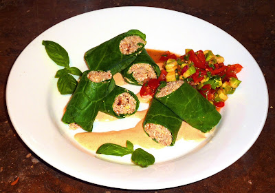 STUFFED COLLARDS WITH RAW MAYO AND SALSA