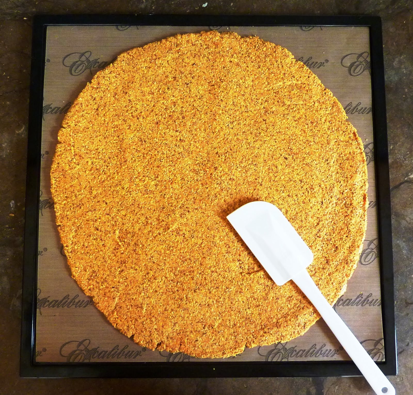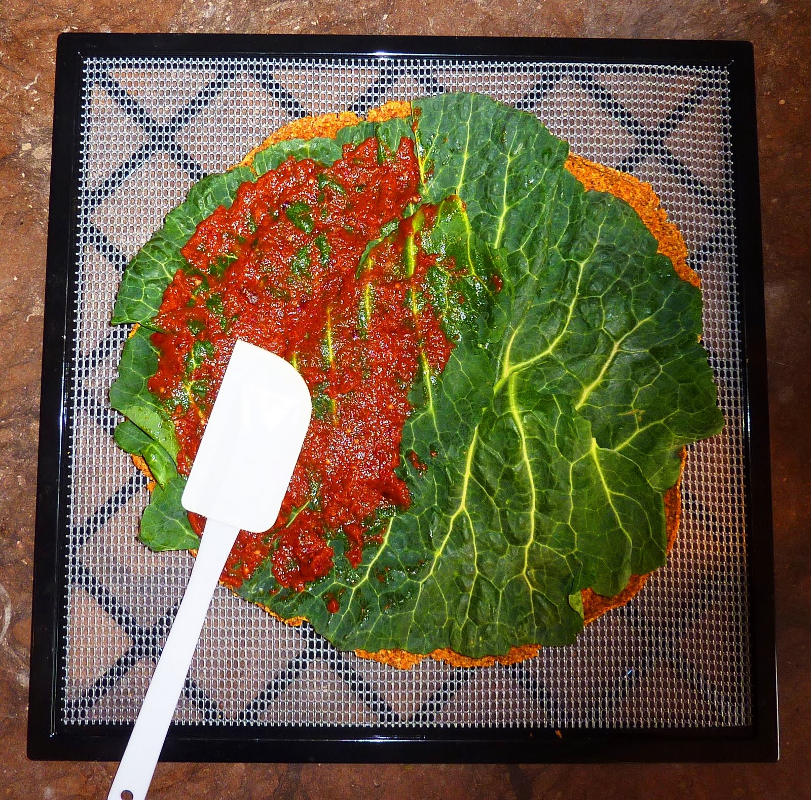 2. Pour over dehydrated broccoli pizza. I used an icing syringe for even spread and ease.