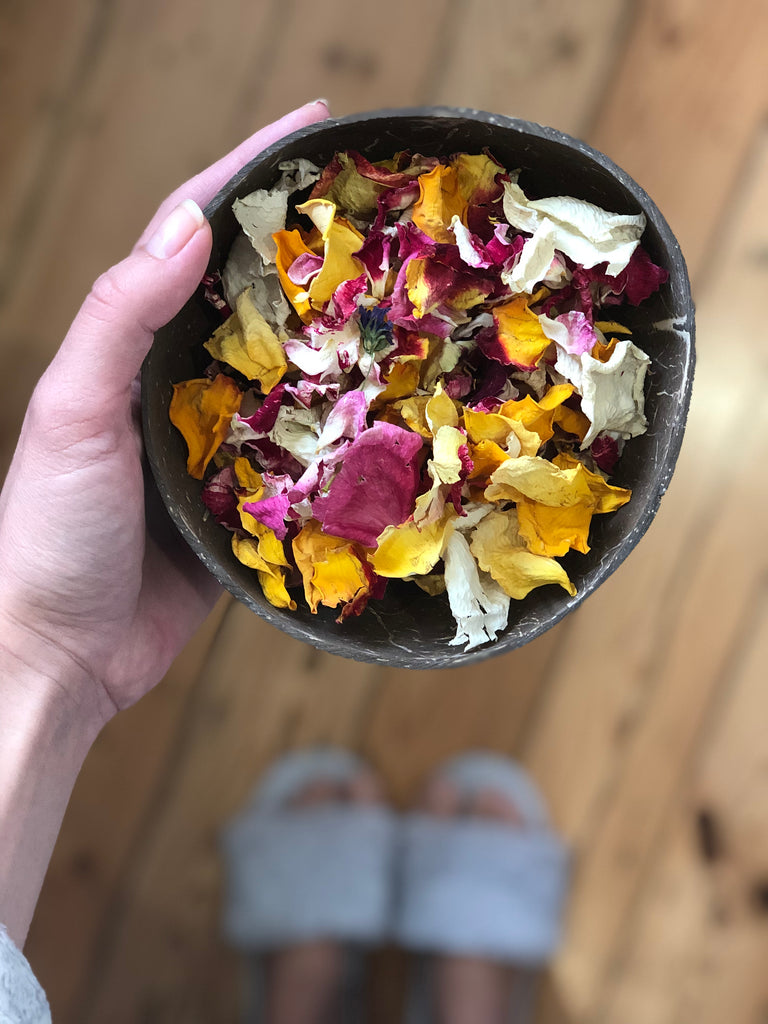 Last month, a friend came back from visiting my parents in Ecuador and brought back a parcel from them. One of the things inside was a box full of stunning rose petals that my parents grew in their organic high vibration garden, picked, washed and dehydrated over low heat and many hours.