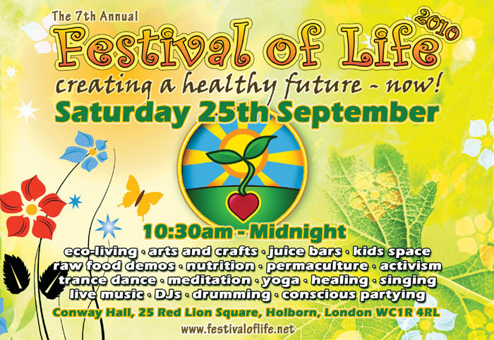 [Festival of Life is the largest annual Raw Vegan event in Europe and this year there were 68 presentations and workshops from amazing inspiring speakers, 100 eco vegan stalls and an uplifting conscious dance party]